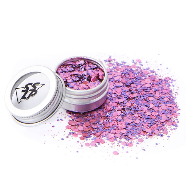 Diva du Dancing est un mélange de paillettes biodégradables à base de plantes créées par « Si Si la Paillette » aux couleurs roses et violettes, et de toutes les tailles pour briller sans polluer.