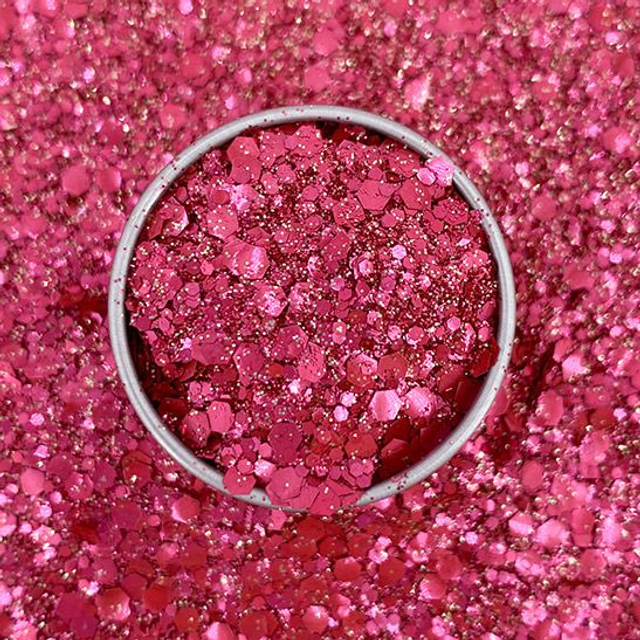 Tagadamour est un mélange de paillettes biodégradables à base de plantes créées par « Si Si la Paillette » aux couleurs rouge framboise et dorées, et de toutes les tailles pour briller sans polluer.
